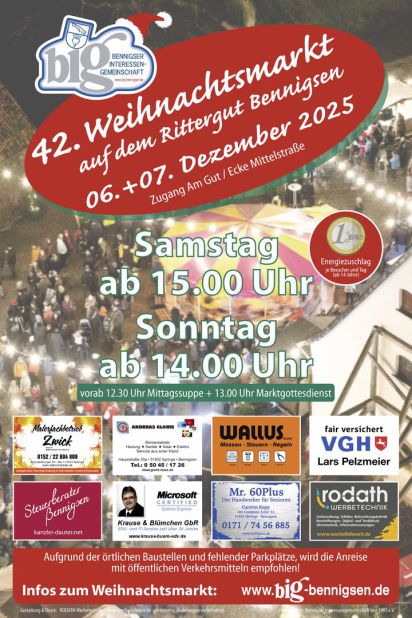 Auch 2025 soll der Weihnachtsmarkt der Bennigser Interessengemeinschaft (BIG) wie in den Vorjahren wieder auf dem Gut stattfinden.